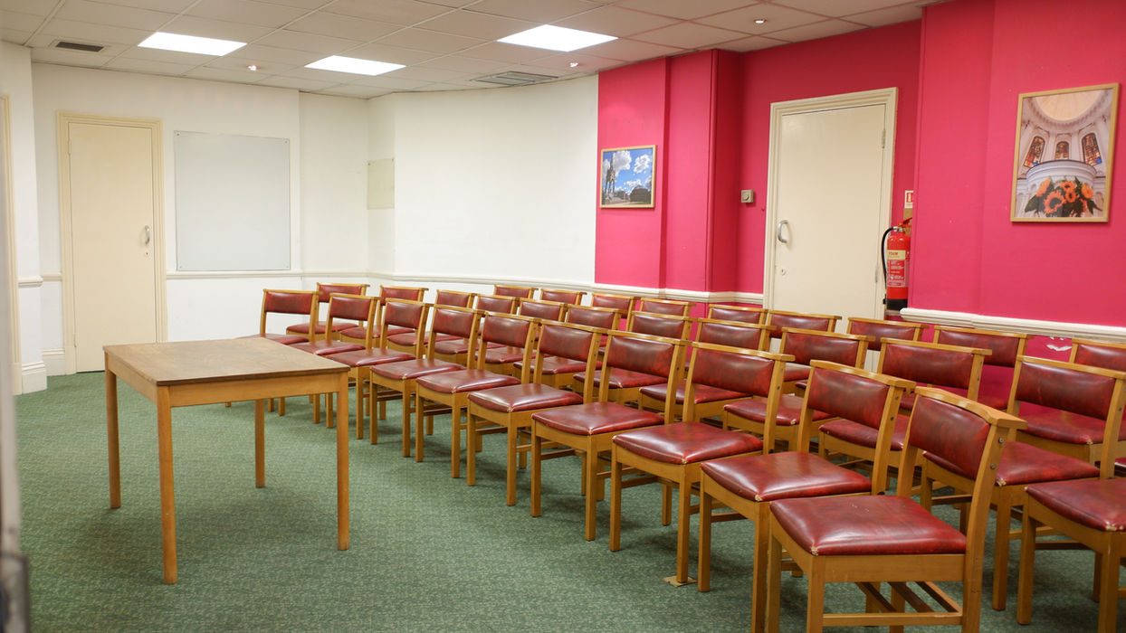 The Wesley Room is a cosy meeting room with natural light, located on the basement level, ideal for hosting discussion groups and small meetings or interview panels. The room is approximately 6x4m. Disability access is available from street level.