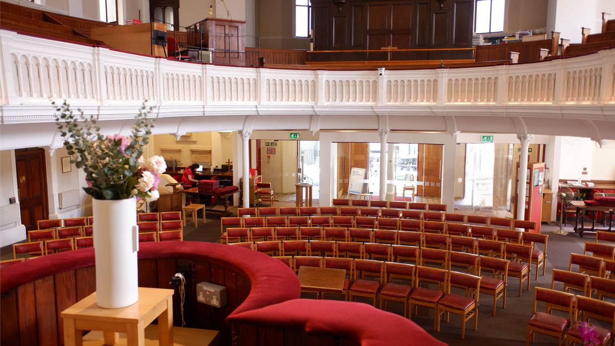 Our Grade II- listed Church can be flexibly arranged to accommodate conferences, performances, rehearsals, and more. The main Church floor measures 16x17m with an additional gallery around three sides. Additional seats, an organ or piano and Kitchen access are available on request on request. Please speak to us for more information and pricing.